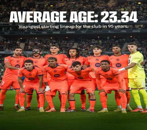 根据统计,本场比赛,巴萨首发阵容的平均年龄只有23.34岁,创造了俱乐部队史95年来的最低纪录。