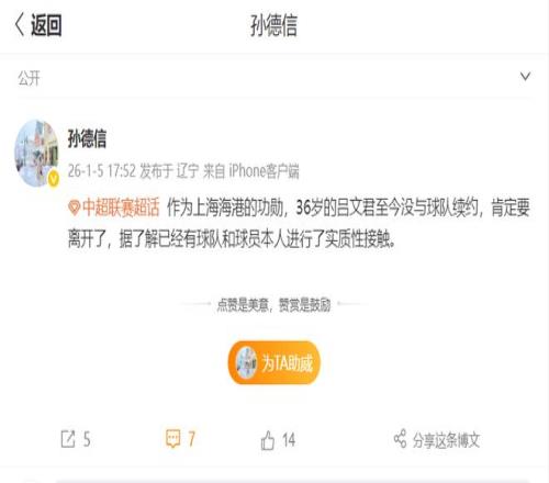 综合来看,吕文君的下一站选择,上海本地低级别球队能平衡家庭与热爱,是当下最现实的选择;海港转型教练需看俱乐部态度,充满不确定性;回归崇明青训则情怀拉满但现实阻碍较大。