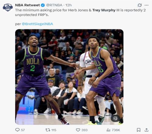 北京时间1月7日晨,根据NBA记者BrettSiegel的报道,鹈鹕队对墨菲的要价是两个不保护的首轮签。(此前金州勇士队已经跟新奥尔良鹈鹕队探讨过关于墨菲的交易)
