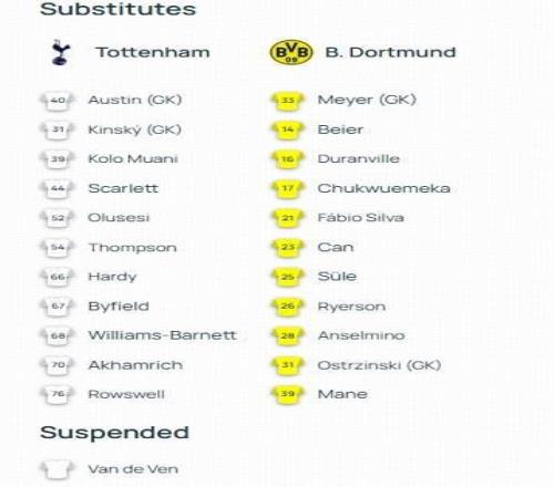 北京时间1月21日4:00,欧冠联赛阶段第7轮,热刺主场对阵多特。赛前首发公布。